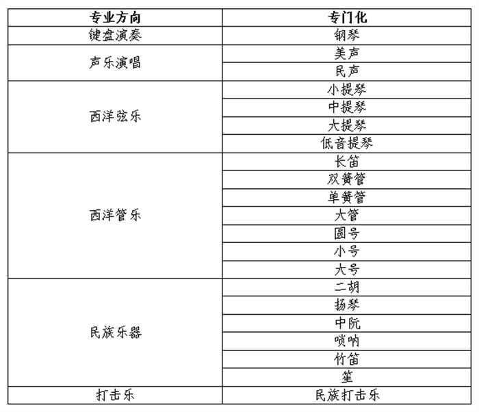 注:浙江省音乐表演专业录取时仅按照考生填报的第一个分专门化方向的音乐表演专业进行录取,且该专业的专门化方向须为本人省统考的测试专门化方向之一。