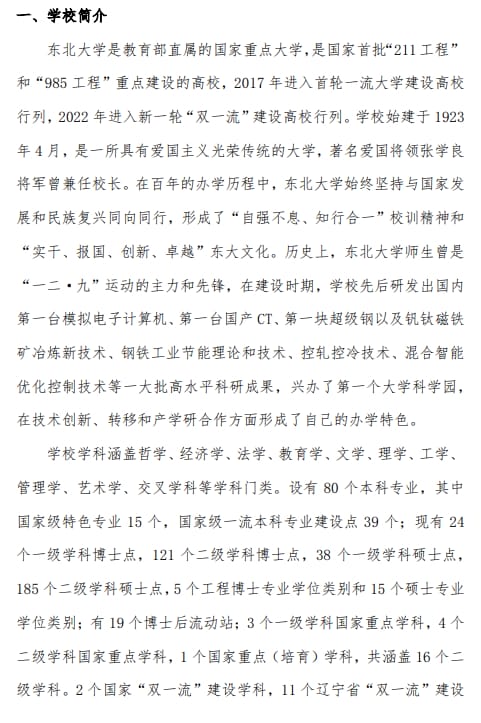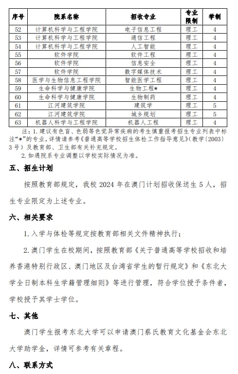 东北大学2024年澳门保送生招生简章