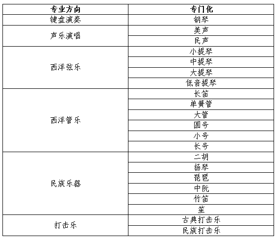 注:浙江省音乐表演专业录取时仅按照考生填报的第一个分专门化方向的音乐表演专业进行录取,且该专业的专门化方向须为本人省统考的测试专门化方向之一。