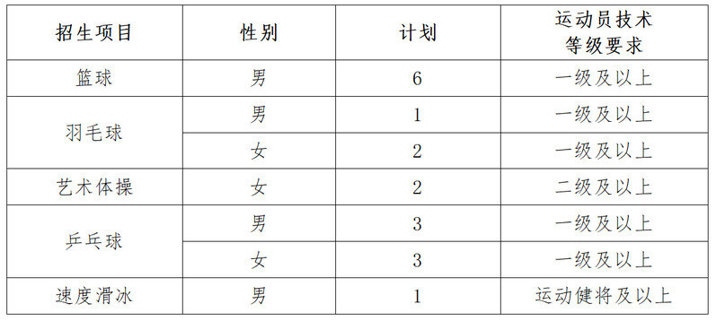 2.具备招生项目要求的运动员技术等级称号,且所报专项必须与运动等级证书相符。考生运动员技术等级以“国家体育总局运动员技术等级系统”公示的数据信息为准。
